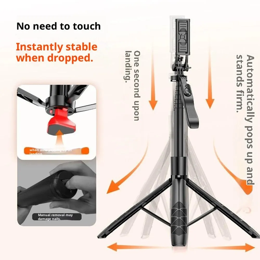 Az L16-TT multifunkciós selfie bot kihúzható alumínium szerkezettel és automatikusan nyíló állvánnyal rendelkezik. Stabil videófelvételt, panorámaképek készítését és kényelmes vlogolást tesz lehetővé anélkül, hogy kézben kellene tartani az eszközt. Az ABS és alumínium ötvözetből készült masszív kialakítás tartósságot és hosszú élettartamot biztosít.