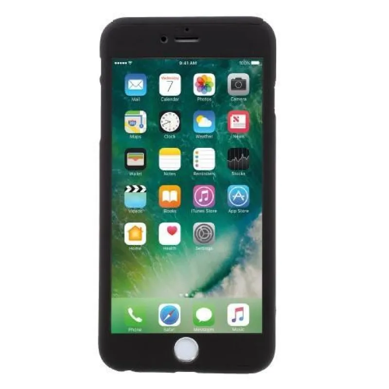 Teljes műanyag tok edzett üveggel iPhone 6s Plus és 6 Plus készülékhez - fekete