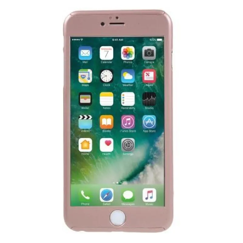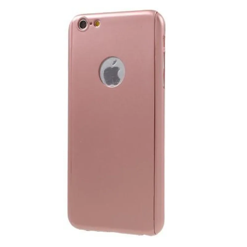 Teljes műanyag tok edzett üveggel iPhone 6s Plus és 6 Plus készülékhez - rózsaarany színben
