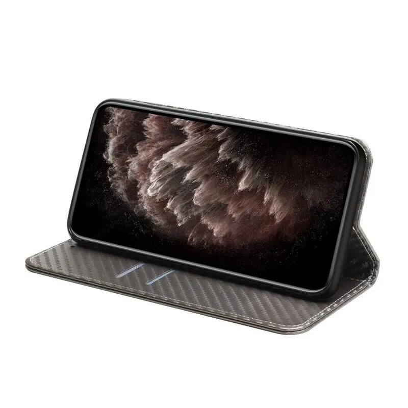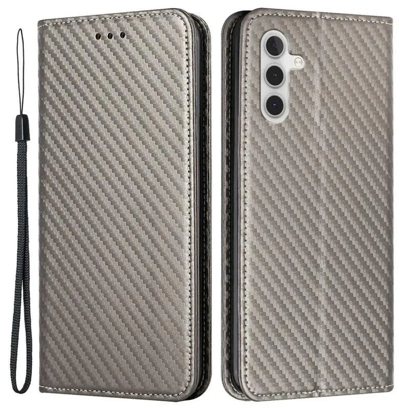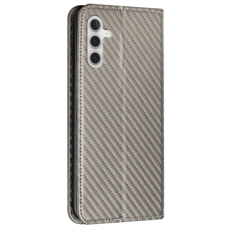 Textúrás könyv tok Samsung Galaxy A14 4G/5G készülékhez - szürke
