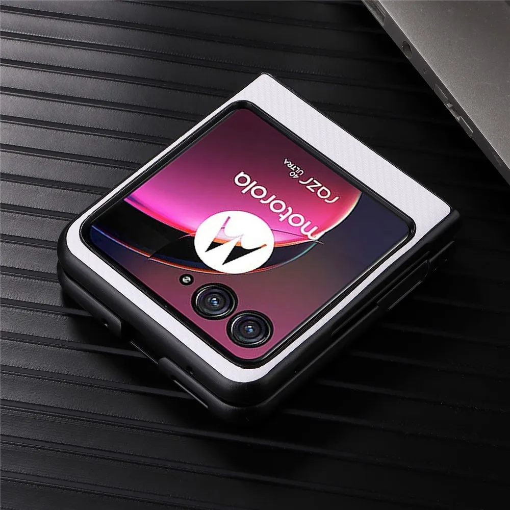 Textúrás műanyag borítás műbőrrel a Motorola Razr 40 Ultra 5G készülékre - fehér