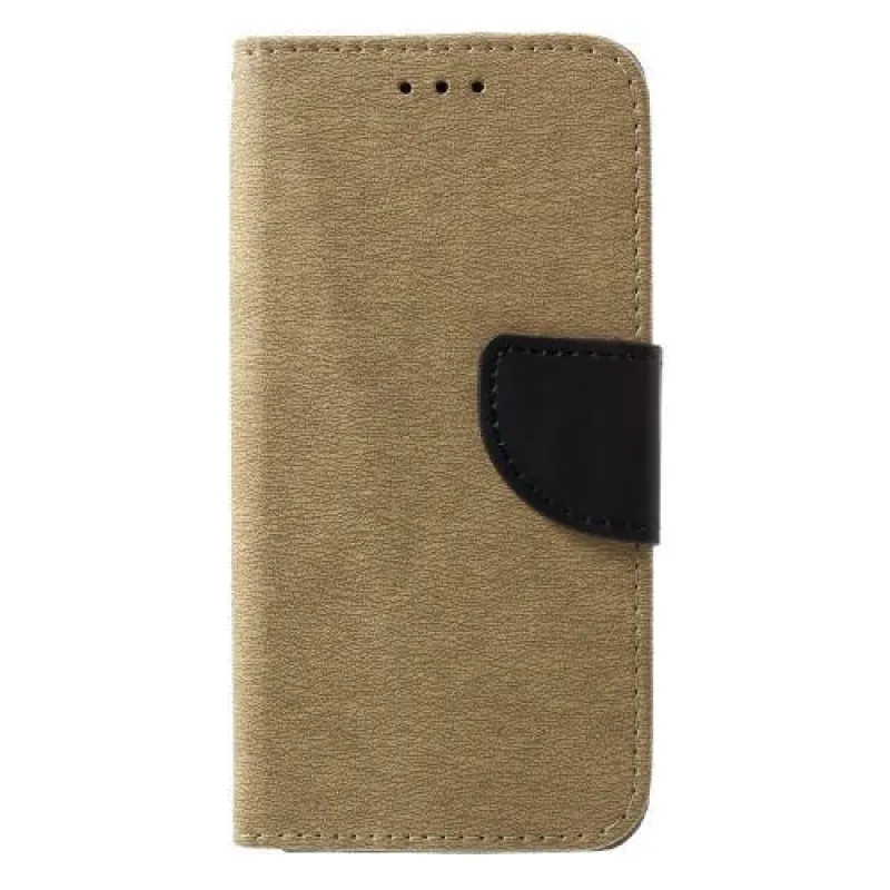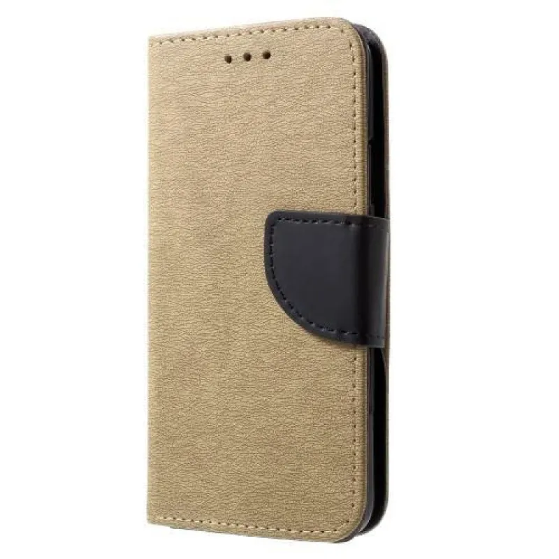 Flip tok iPhone X készülékhez arany színű műbőrből, más színű mágneses záródással