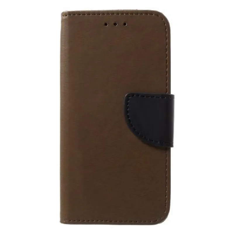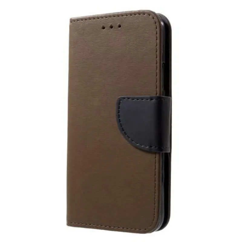 Flip borító iPhone X készülékhez barna színű műbőrből, más színű mágneses záródással