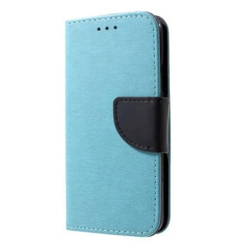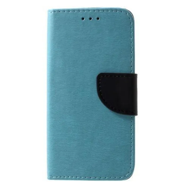 Flip borító iPhone X készülékhez kék színű műbőrből, más színű mágneses záródással