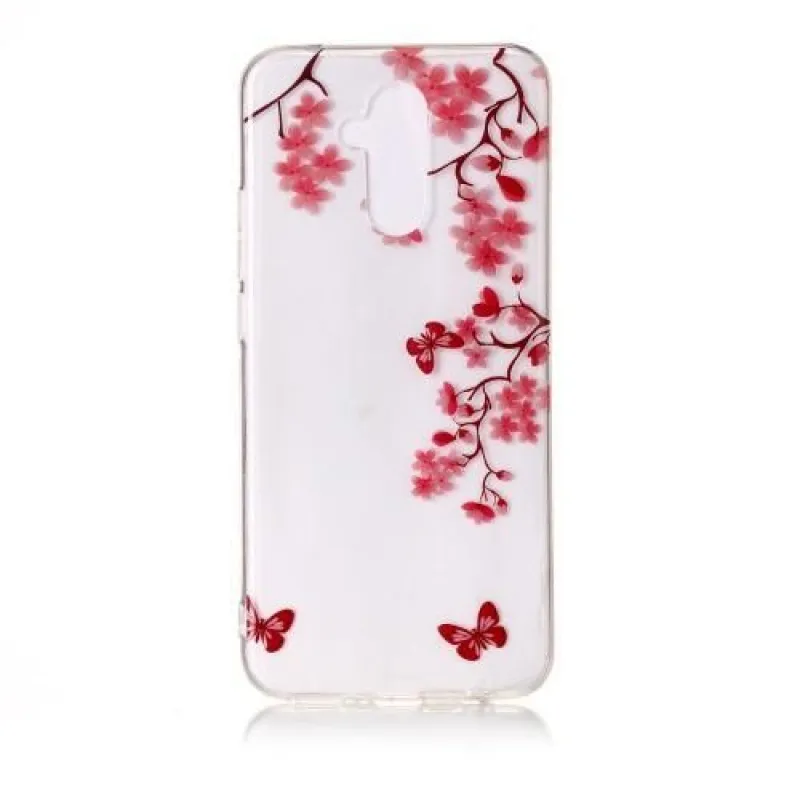 Átlátszó gélből készült védőborítás virágos ágakkal és pillangókkal díszített motívummal a Huawei Mate 20 Lite készülékhez