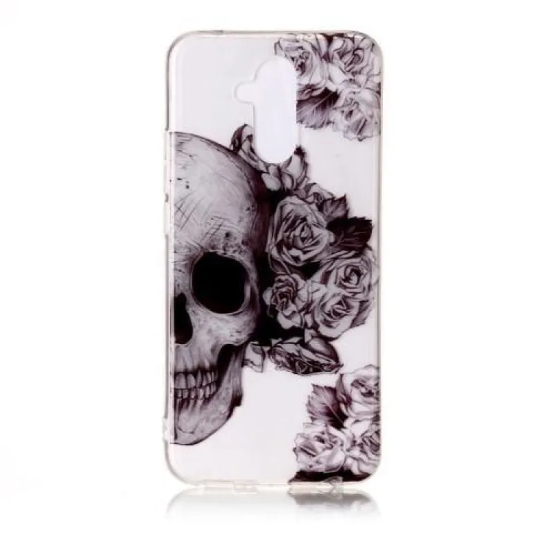 Átlátszó gélből készült védőborítás koponya motívummal és rózsákkal a Huawei Mate 20 Lite készülékhez