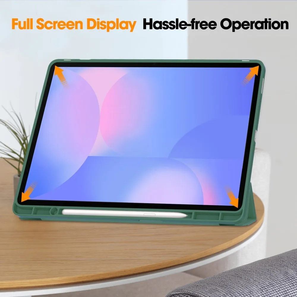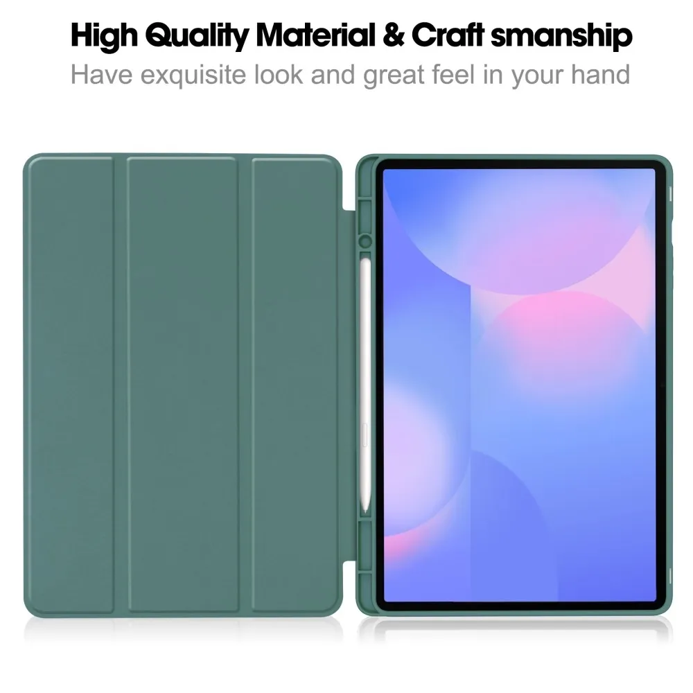 ✅【Anyag】A Samsung Galaxy Tab S10 FE+ készülékhez készült sötétzöld flip tok puha PU bőrből és TPU belső tokból készült, amely kiváló minőséget és vonzó megjelenést biztosít.