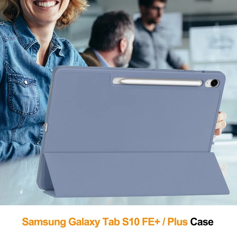 ✅【Anyag】A Samsung Galaxy Tab S10 FE+ készülékhez készült, lila színű, flip tok puha PU bőrből és TPU belső tokból készült, amely kiváló minőséget és vonzó megjelenést biztosít.
