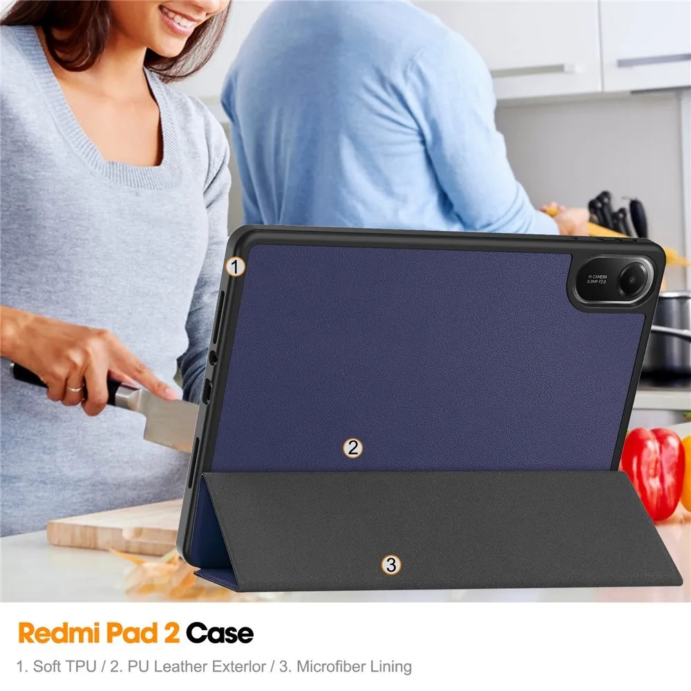 ✅【Anyag】A Xiaomi Xiaomi Redmi Pad 2 tablethez való sötétkék flip tok puha PU bőrből készült, TPU belső tokkal kombinálva, amely kiváló minőséget és vonzó megjelenést kínál.