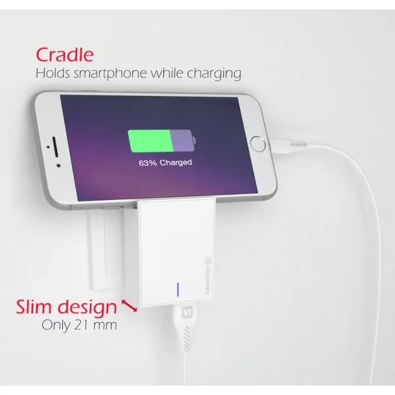 Töltő Swissten SMART IC 3A 3A 2x USB + USB/Type C kábel 1,2m - fehér