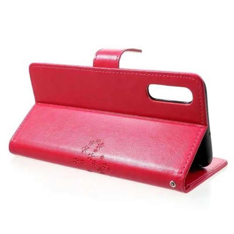 Tree PU bőr pénztárca tok Samsung Galaxy A70 - rózsaszínű