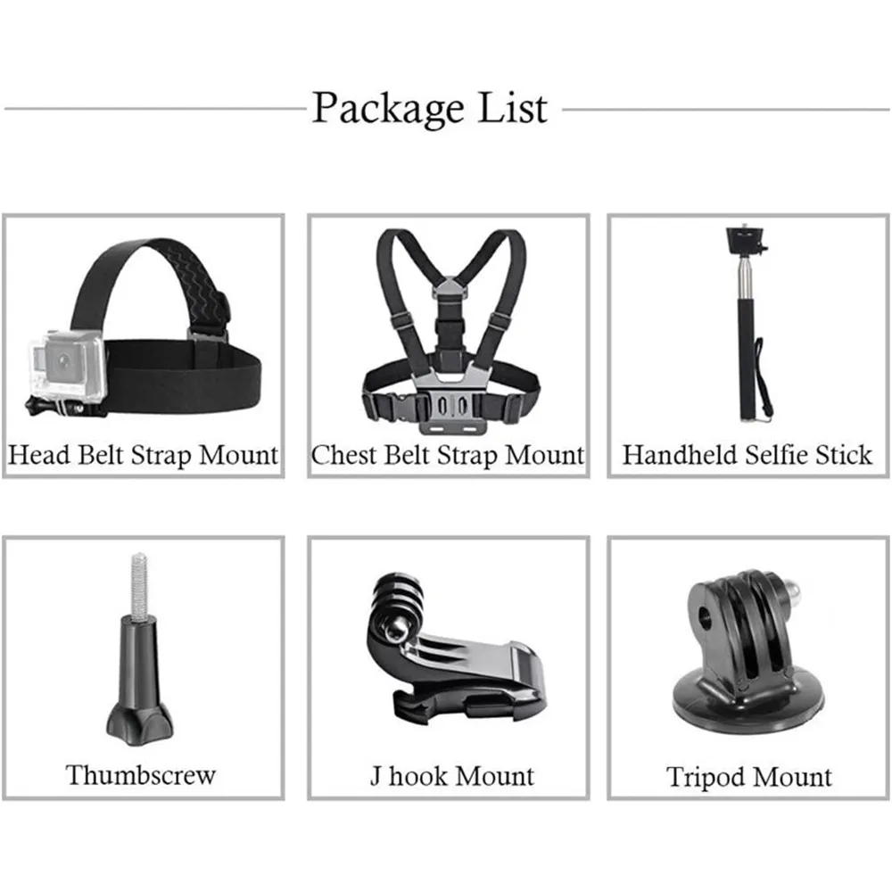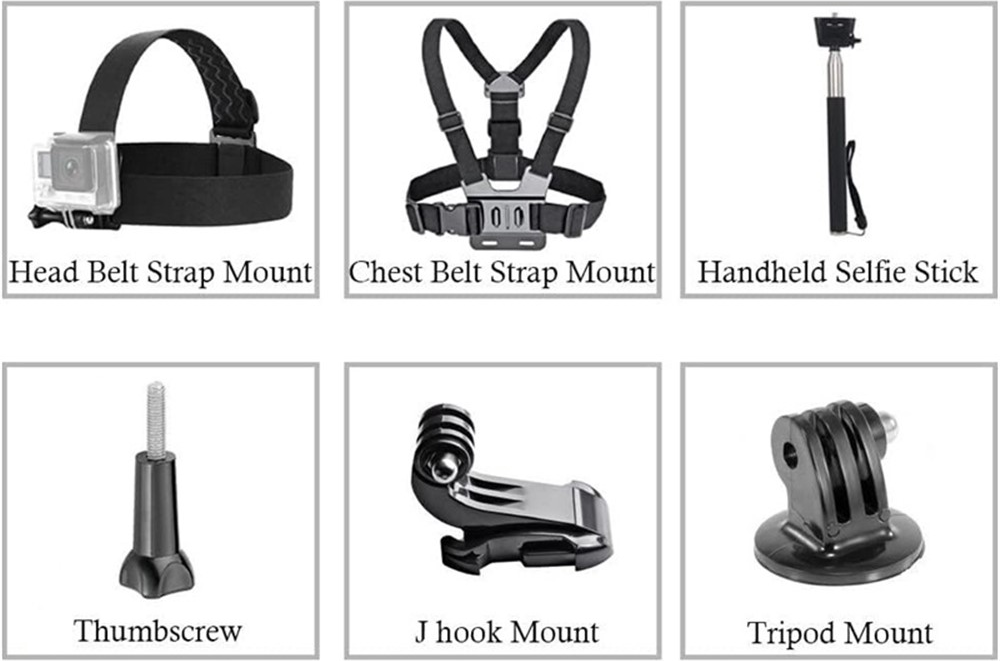 A csomag tartalmaz fejpántot és mellkaspántot, amelyek lehetővé teszik az első személyű felvételek készítését kerékpározás, futás, túrázás vagy téli sportok közben. A kézi szelfibot ideális vlogoláshoz, csoportképekhez vagy stabil kézből történő felvételekhez. Az olyan rögzítőelemek, mint a J-Hook tartó, a állvány adapter és a rögzítő csavar biztosítják a kamera egyszerű csatlakoztatását és a szabványos tartókkal való kompatibilitást.