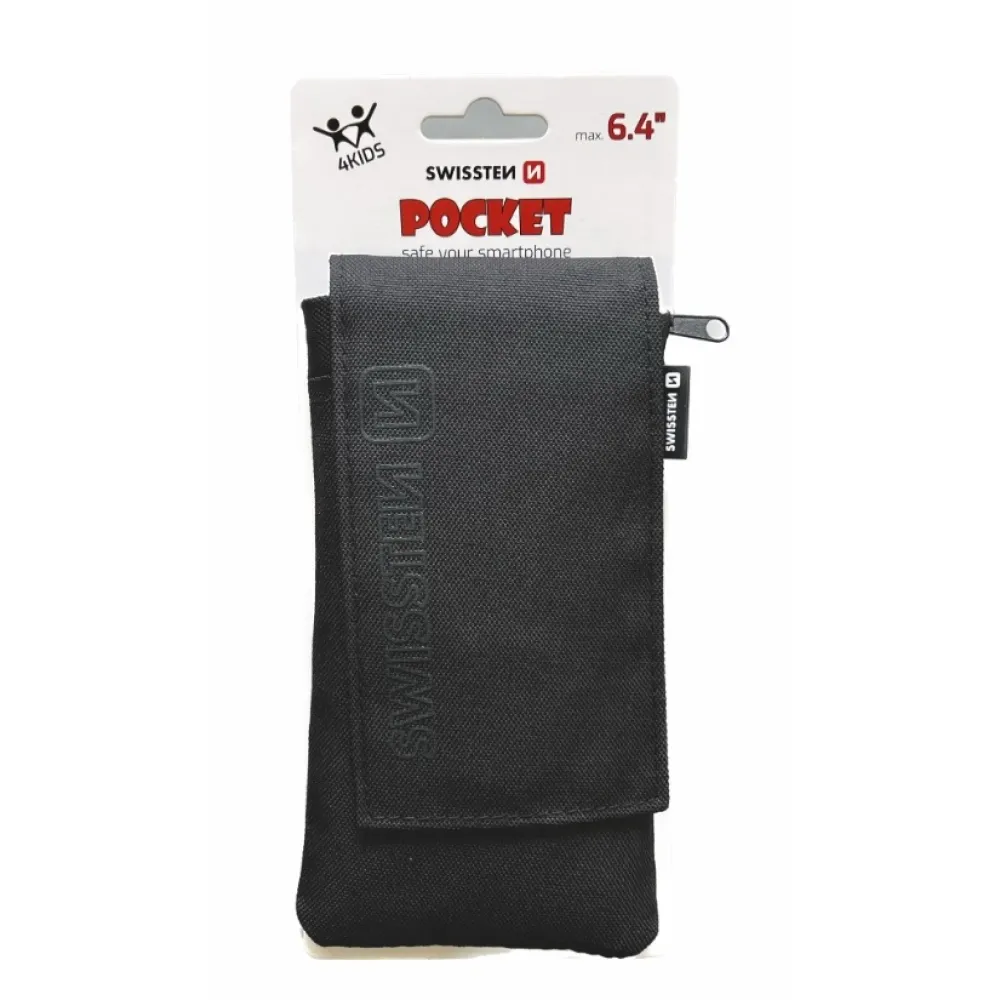 Univerzális Swissten Pocket 6.4 szövet tok húzózsinórral - fekete