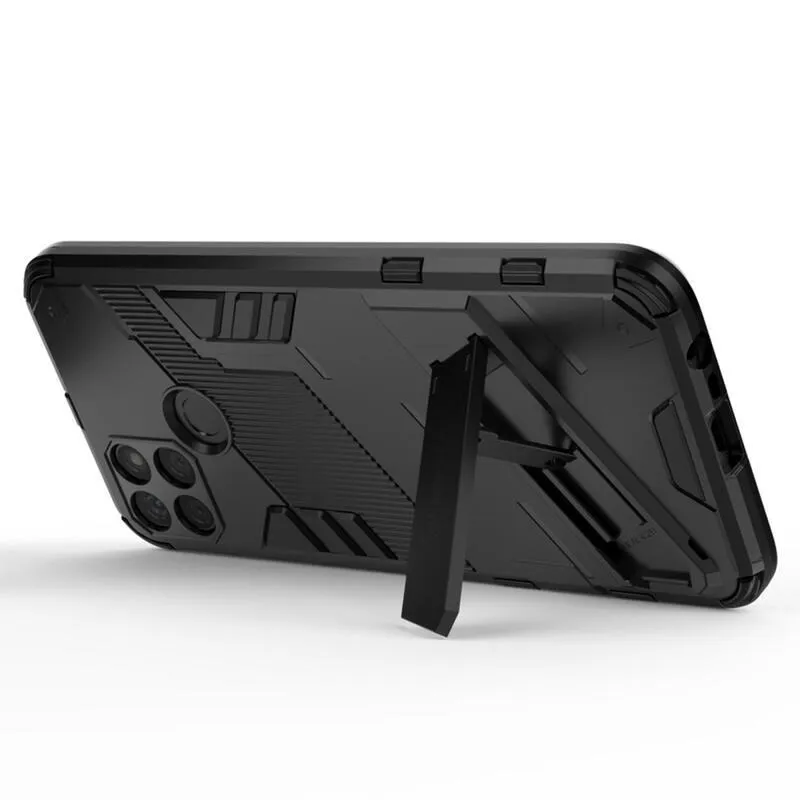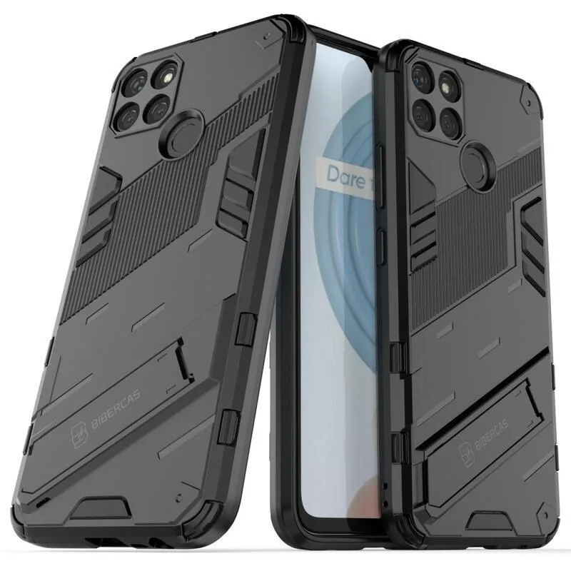 Ütésálló hibrid borítás csuklós állvánnyal a Realme C21Y/C25Y készülékhez - fekete színű