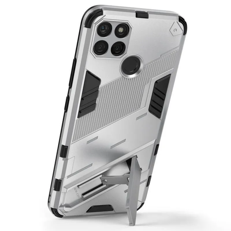 Ütésálló hibrid borítás felhajtható állvánnyal a Realme C21Y/C25Y készülékhez - fehér