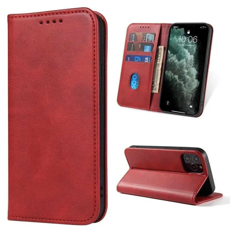 Üzleti PU bőr pénztárca tok iPhone 12 Pro Max készülékhez - piros
