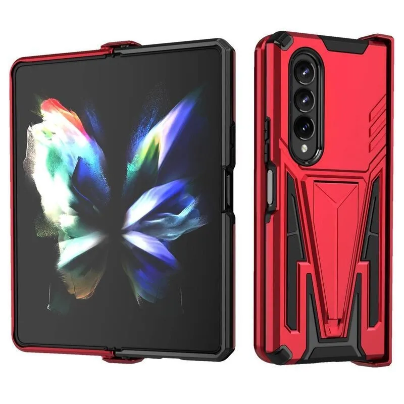 V-alakú tartós hibrid borító felhajtható állvánnyal Samsung Galaxy Z Fold4 5G készülékhez - piros