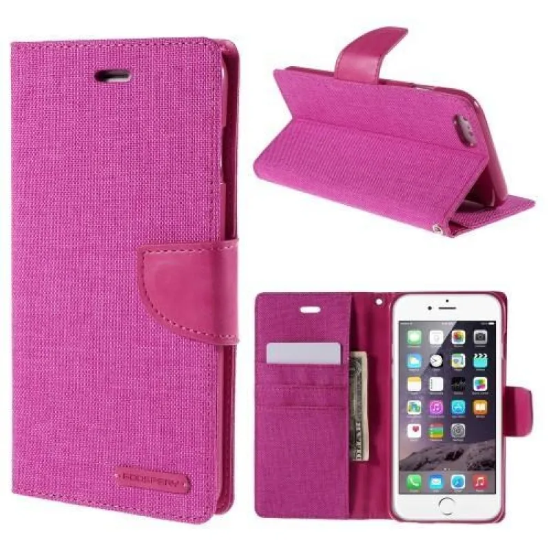 Vászon PU bőr/textil tok iPhone 6s Plus és 6 Plus készülékhez - rózsaszínű
