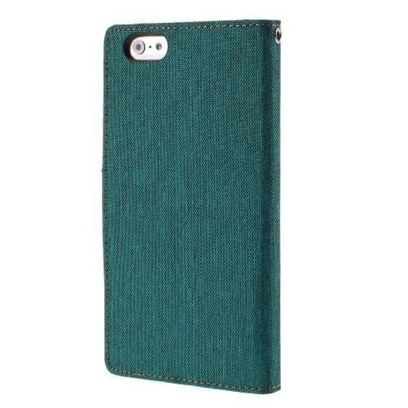Vászon PU bőr/textil tok iPhone 6s Plus és 6 Plus készülékhez - teáskék színű