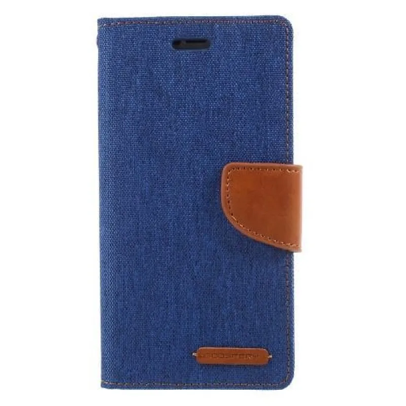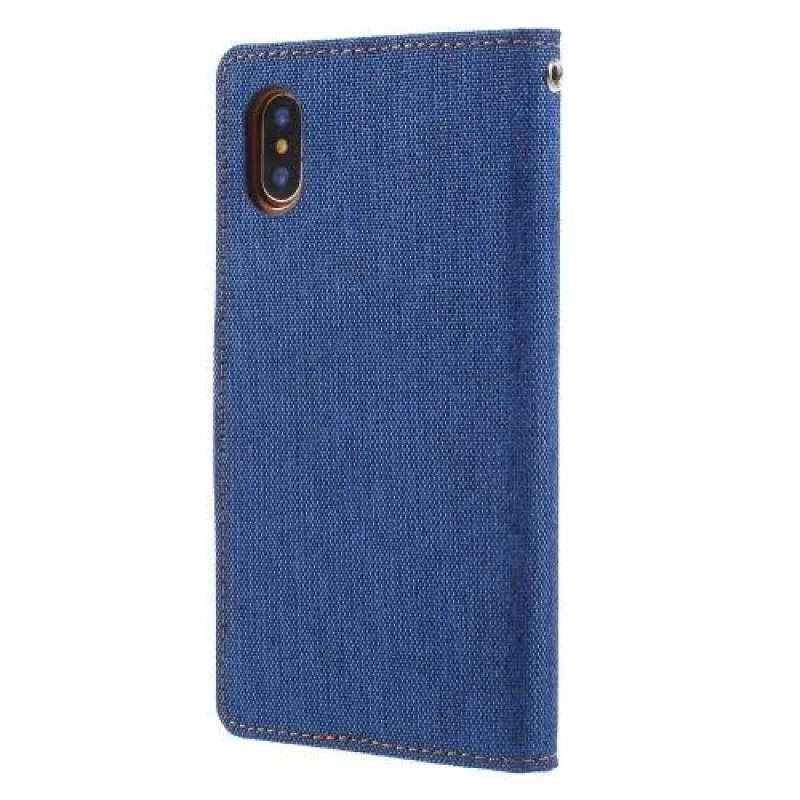 Vászon PU bőr/textil tok iPhone X készülékhez - kék