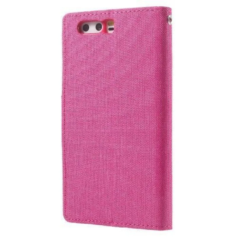 Vászon textil/PU bőr tok Huawei P10-hez - rózsaszínű