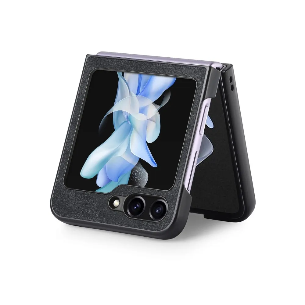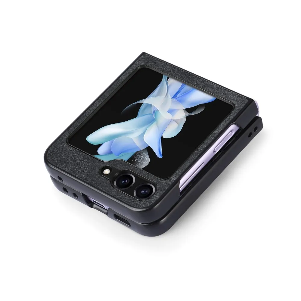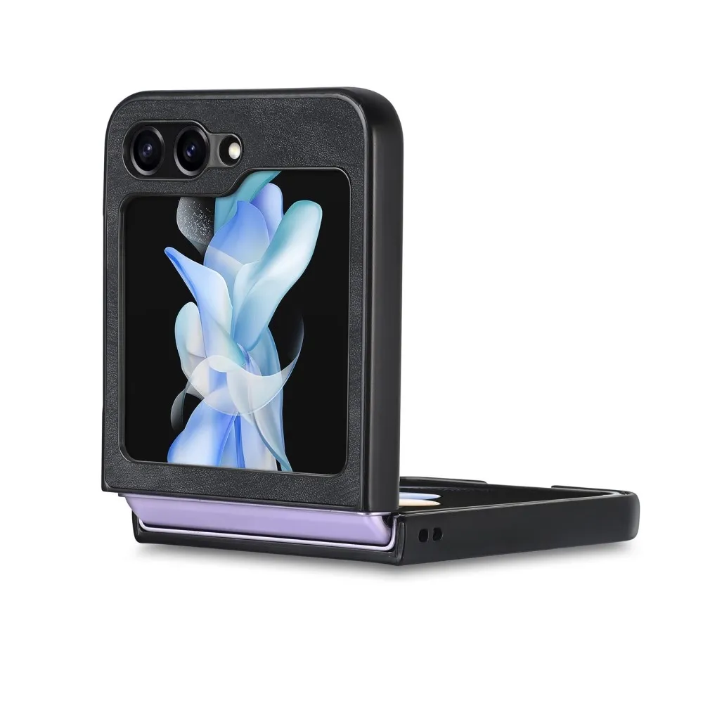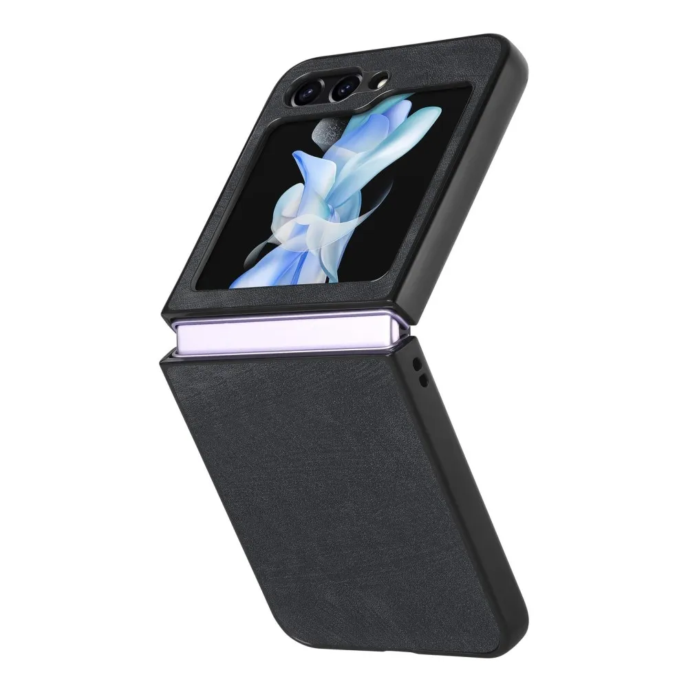 Vintage fekete műanyag tok műbőrrel Samsung Galaxy Z Flip6 5G számára