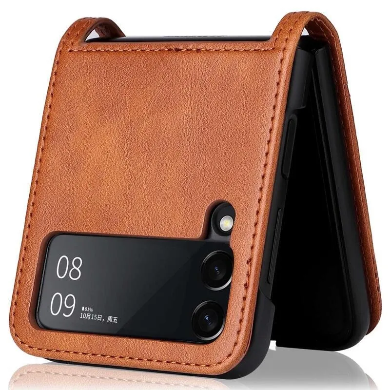 Vintage műanyag borító PU bőrrel borított mobiltelefonra Samsung Galaxy Z Flip4 5G - barna