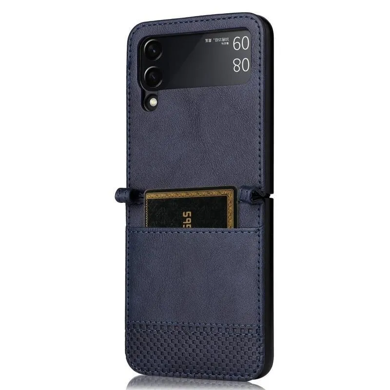 Vintage műanyag borító PU bőrrel borított mobiltelefonra Samsung Galaxy Z Flip4 5G - kék