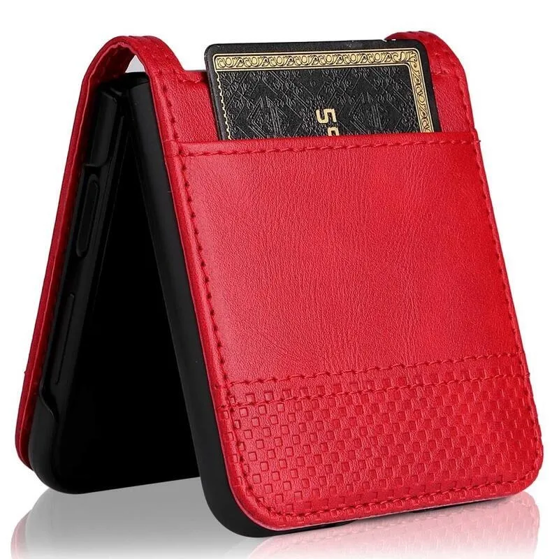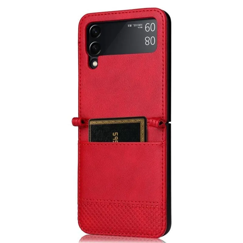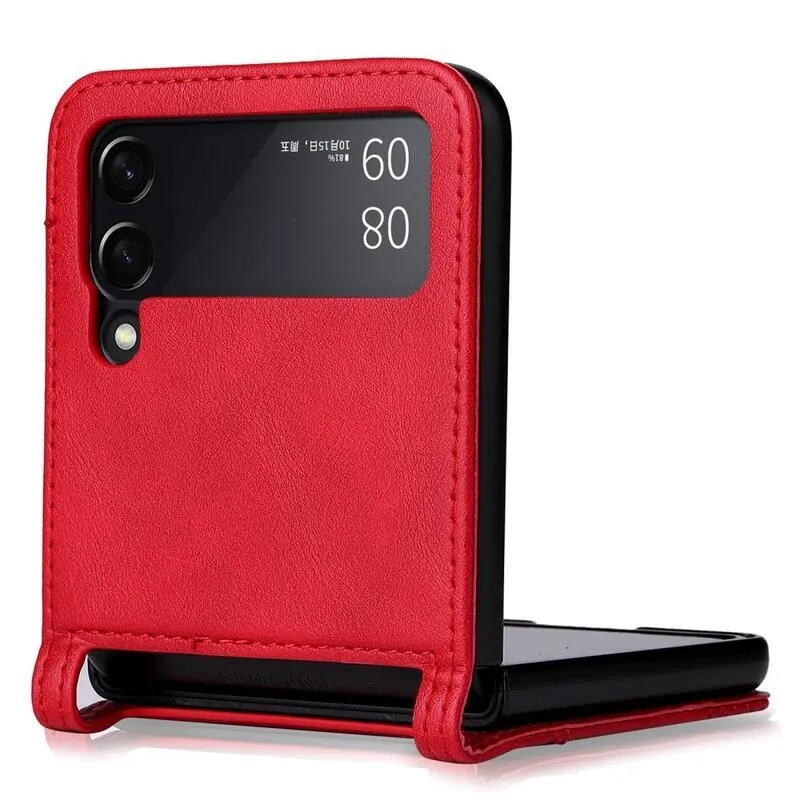 Vintage műanyag borító PU bőrrel borított mobiltelefonra Samsung Galaxy Z Flip4 5G - piros