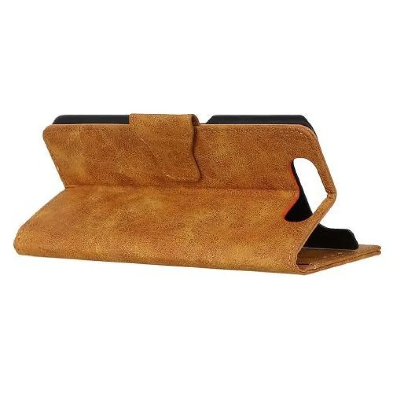 Vintage stílusos PU bőr pénztárca tok állvánnyal Samsung Galaxy A80-hoz - barna