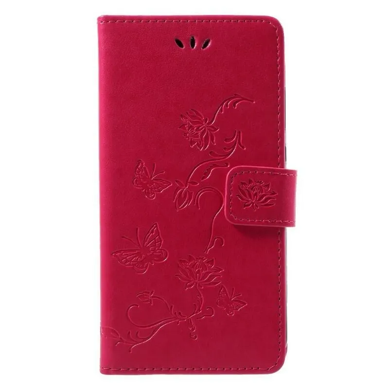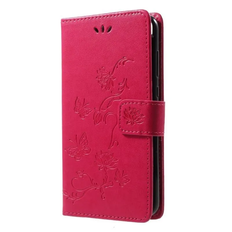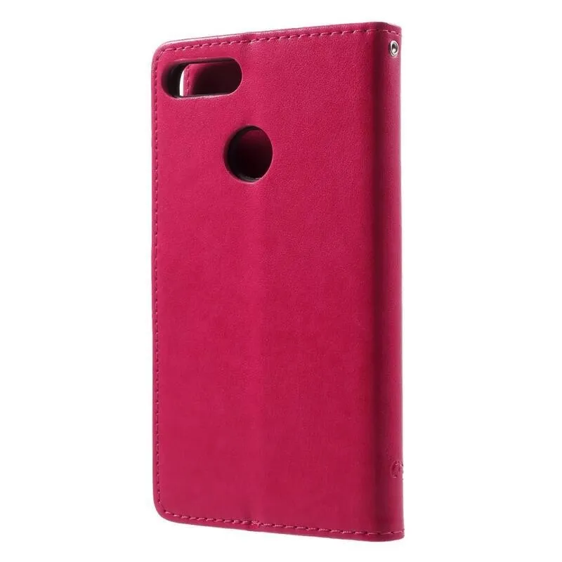 Virág PU bőr pénztárca tok Honor 9 Lite-hoz - rózsaszínű