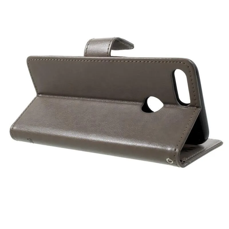 Virág PU bőr pénztárca tok Honor 9 Lite-hoz - szürke