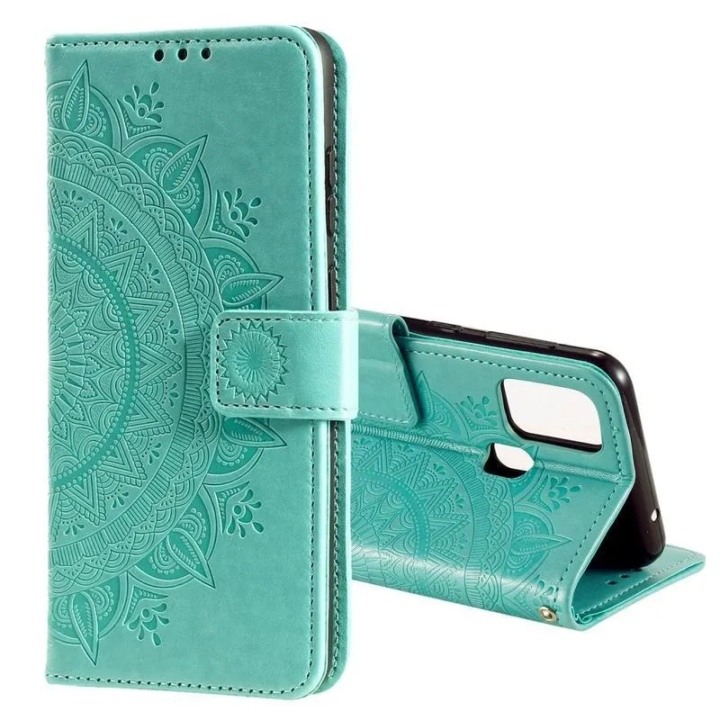 Virág PU bőr pénztárca tok Honor 9X Lite-hoz - zöld
