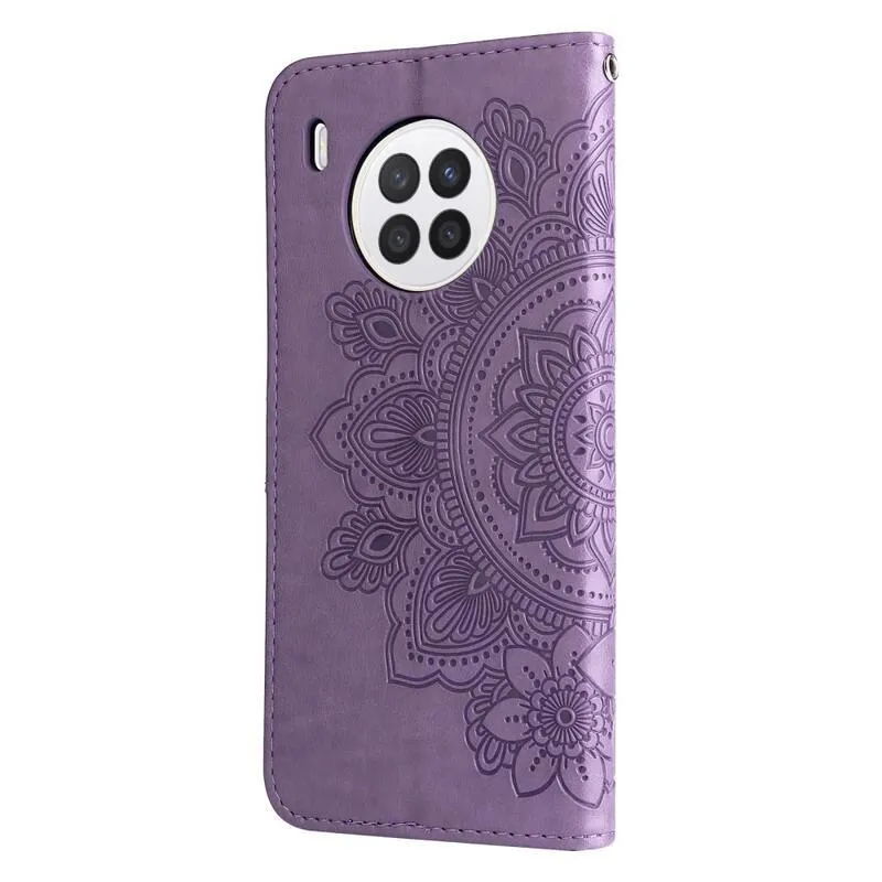 Virág PU bőr pénztárca tok Huawei Nova 8i/Honor 50 Lite-hoz - lila