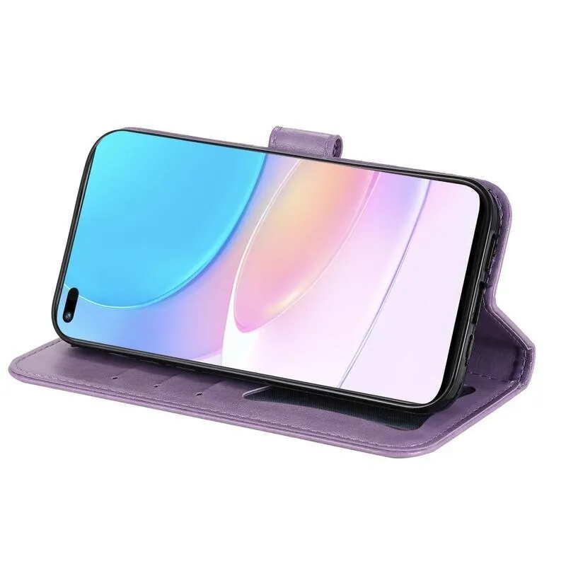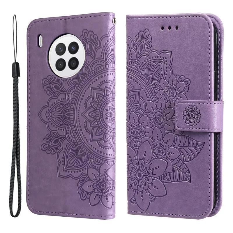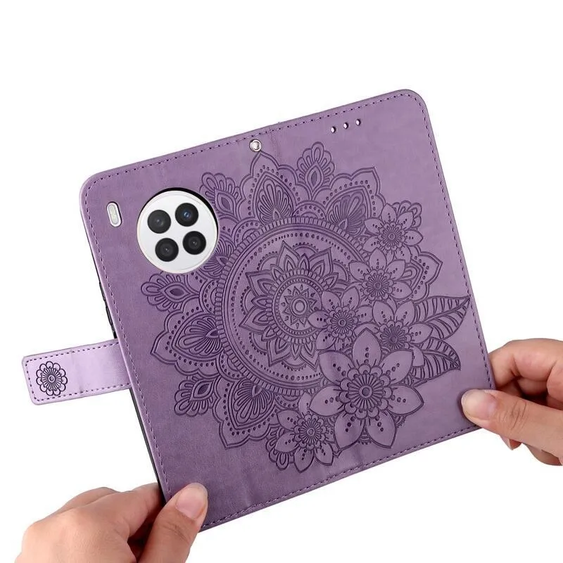 Virág lila pénztárca tok Huawei Nova 8i/Honor 50 Lite számára