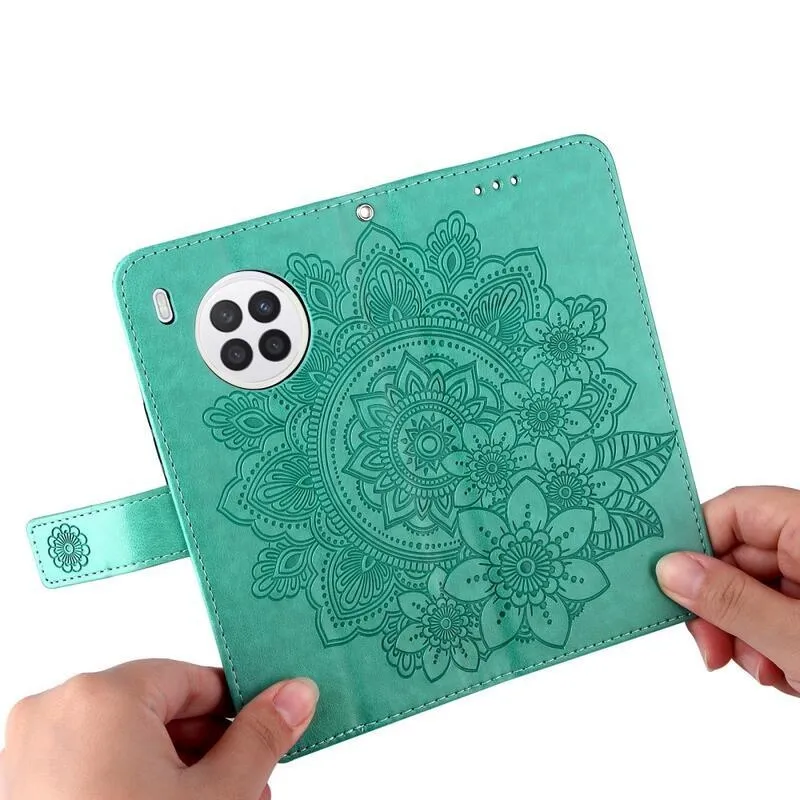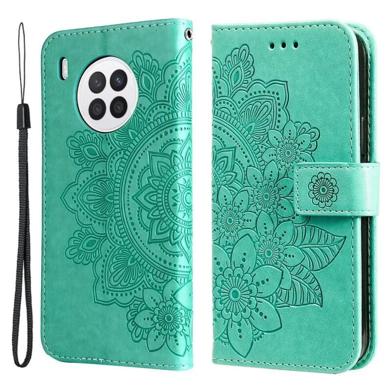Virág zöld pénztárca tok Huawei Nova 8i/Honor 50 Lite számára