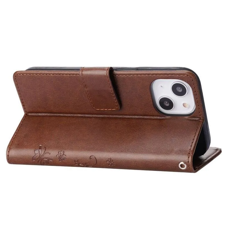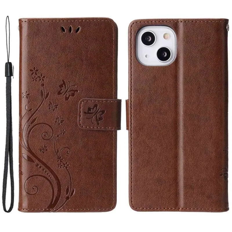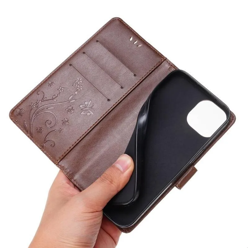 Virág barna pénztárca tok iPhone 14 6.1 készülékhez