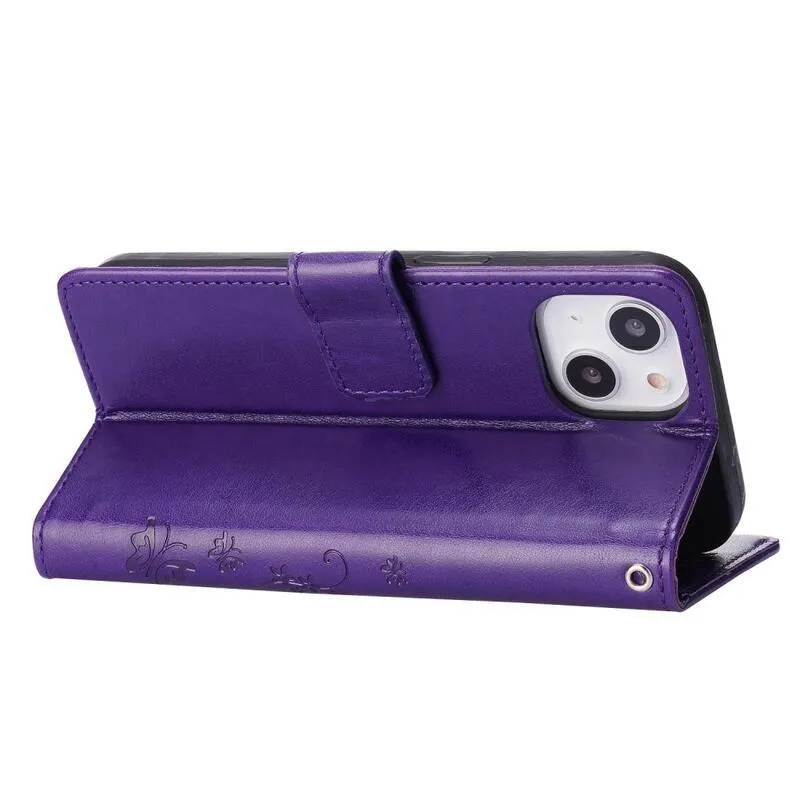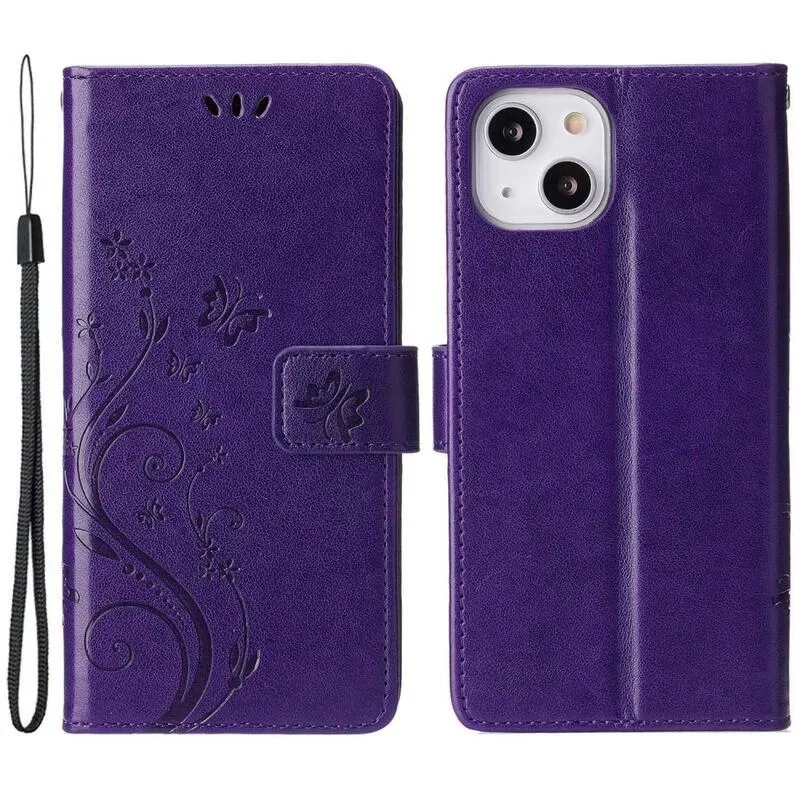 Virág sötét lila pénztárca tok iPhone 14 6.1 számára