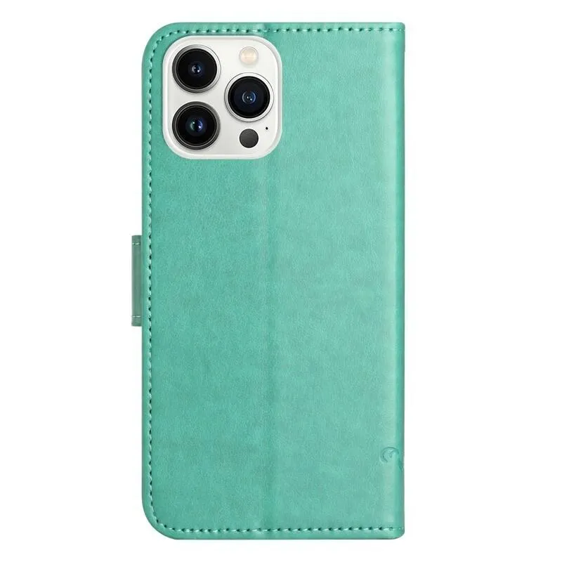 Virág PU bőr pénztárca tok iPhone 14 Pro 6.1 - cián színű