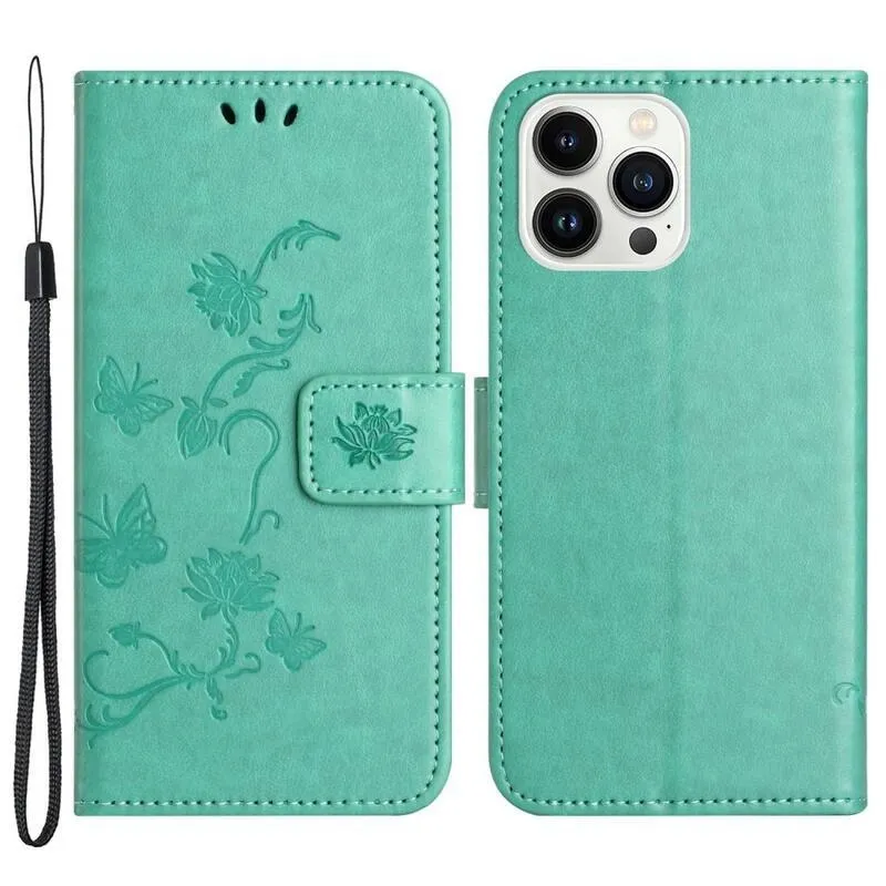 Virágos ciánkék pénztárca tok a Phone 14 Pro 6.1 telefonhoz