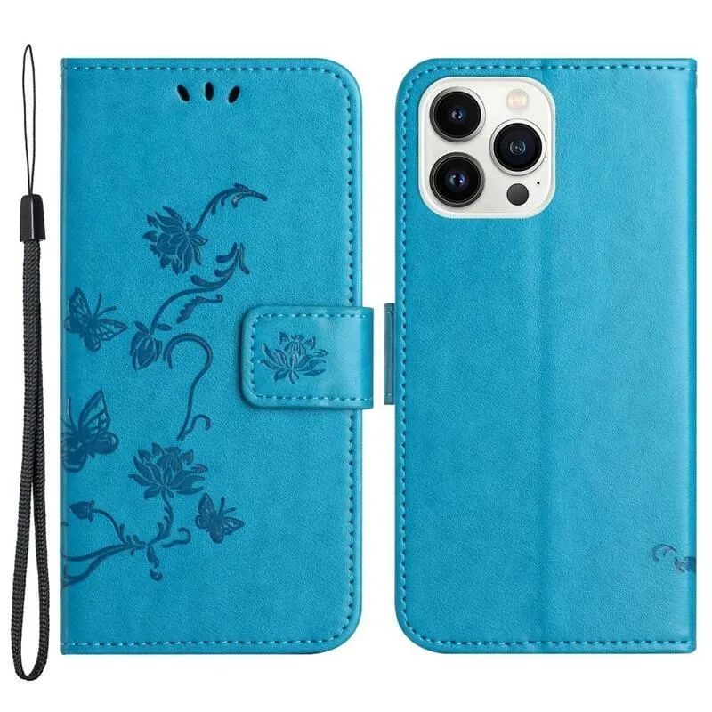 Virág kék pénztárca tok a Phone 14 Pro 6.1 telefonhoz