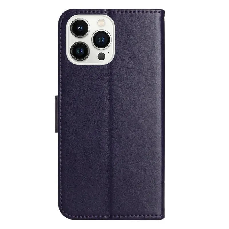 Virág PU bőr pénztárca tok iPhone 14 Pro 6.1 készülékhez - sötét lila