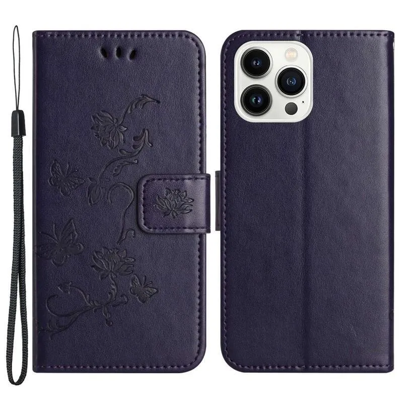 Virág sötét lila pénztárca tok a Phone 14 Pro 6.1 telefonhoz