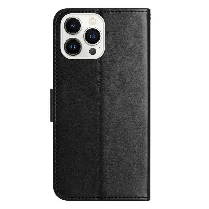 Virág PU bőr pénztárca tok iPhone 14 Pro Max 6.7 készülékhez - fekete