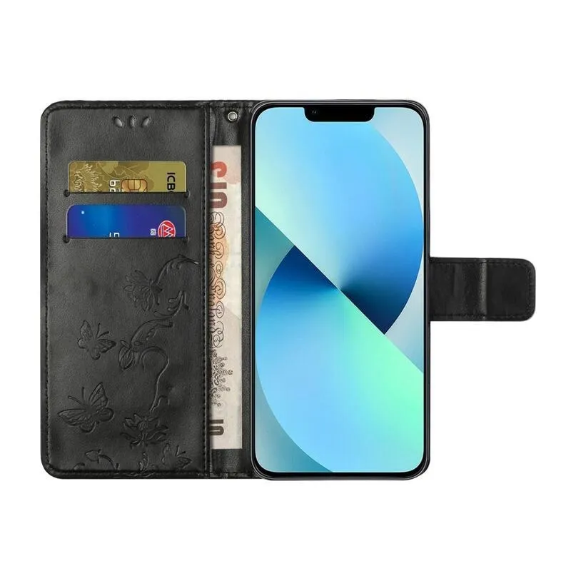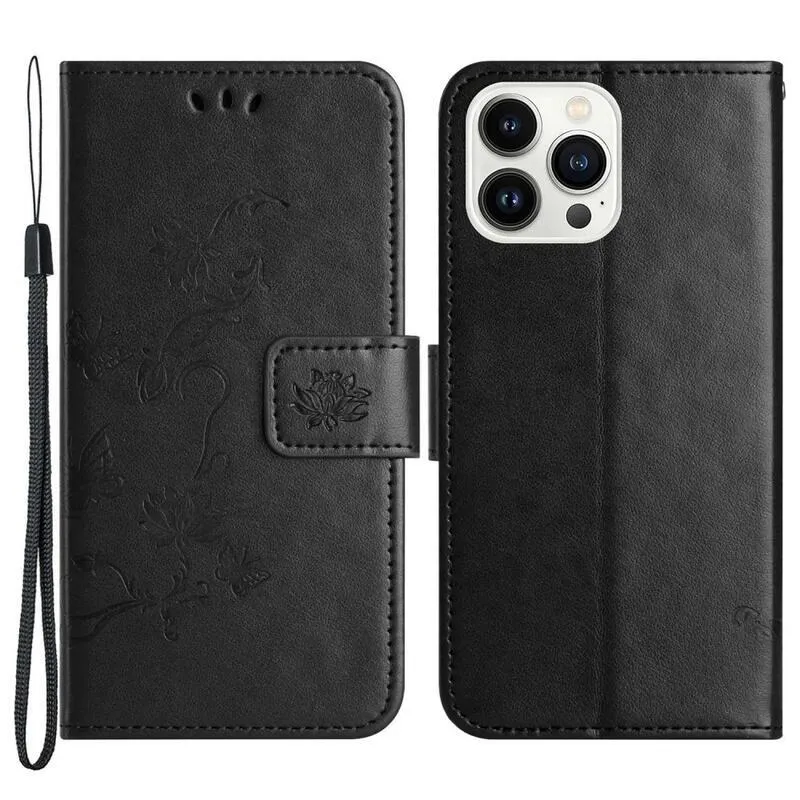 Virágos fekete pénztárca tok iPhone 14 Pro Max 6.7 készülékhez