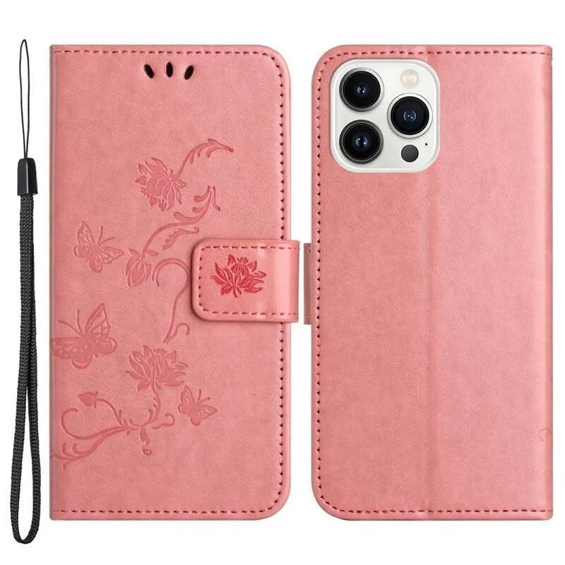 Virág rózsaszín pénztárca tok iPhone 14 Pro Max 6.7 készülékhez