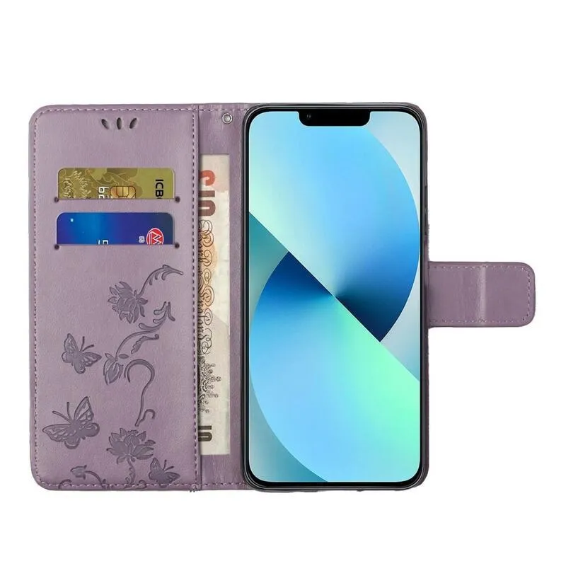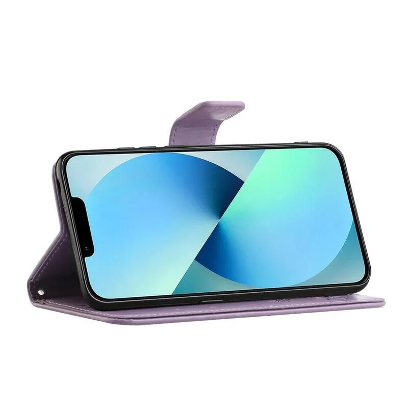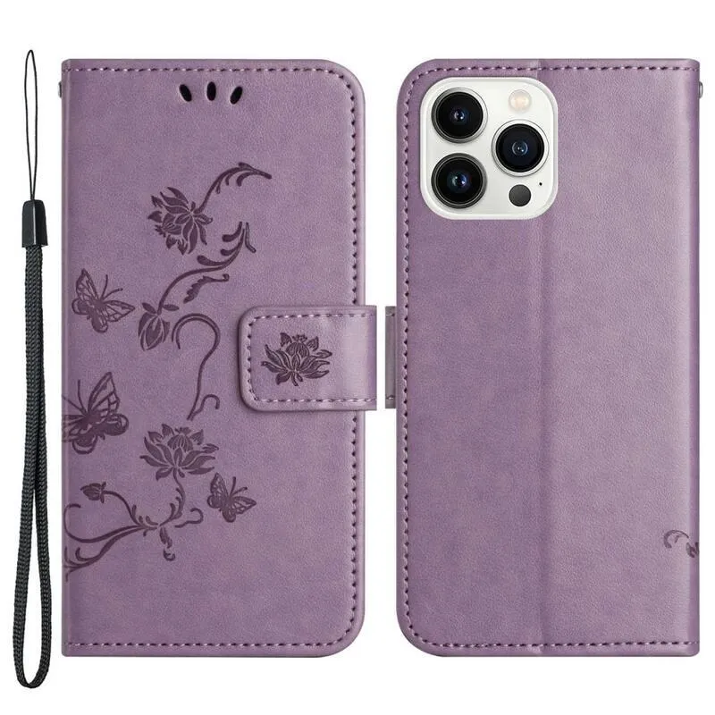 Virág világos lila pénztárca tok iPhone 14 Pro Max 6.7 számára