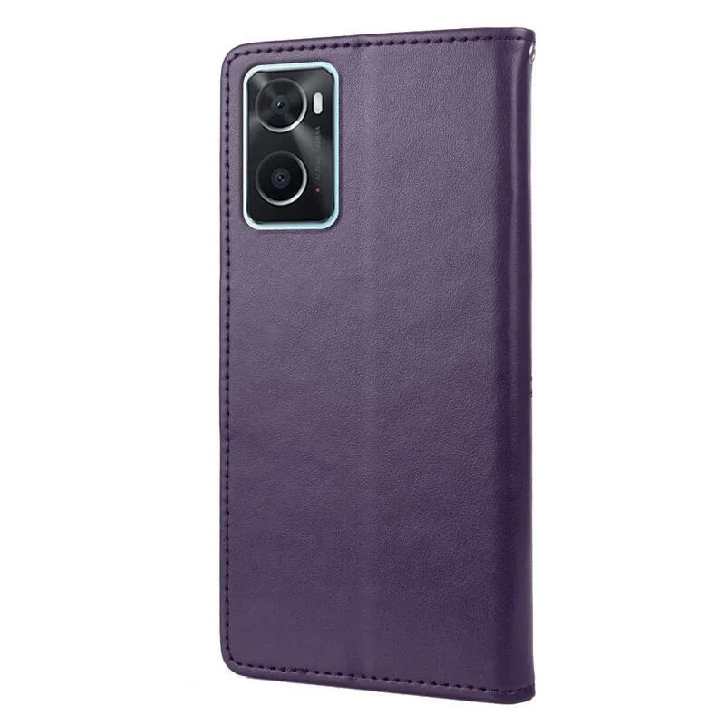 Virág PU bőr pénztárca tok Realme 9i - sötét lila