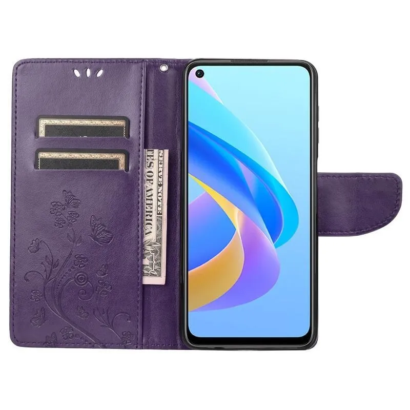 Virág sötétlila pénztárca tok a Realme 9i számára