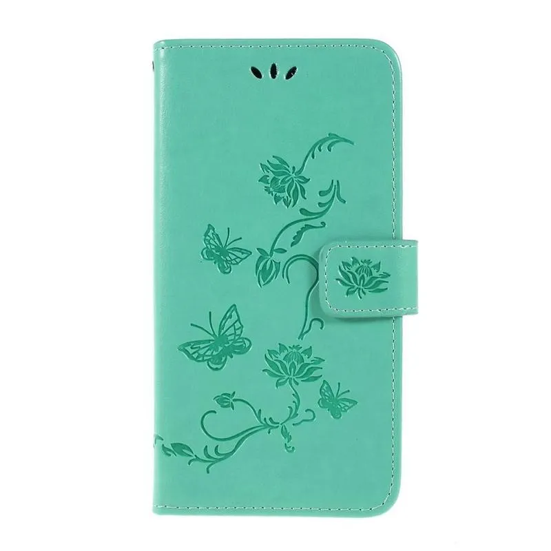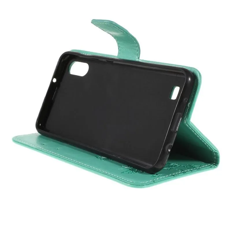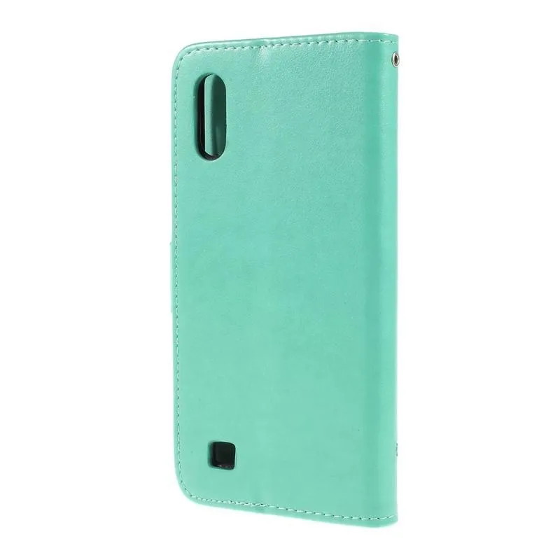 Virág PU bőr pénztárca tok Samsung Galaxy A10 - cián színű
